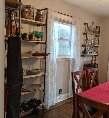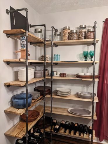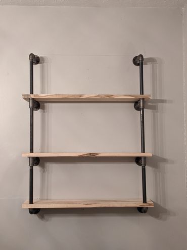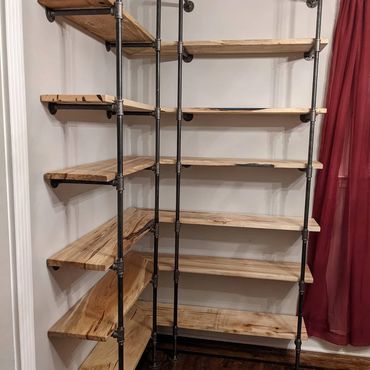 We can design custom shelving for any space. Made with 1/2" Black Iron Pipe and the wood of your choice sourced from a local sawmill. Add a bit of what I like to call Industrial Modern Farmhouse flare to your home.